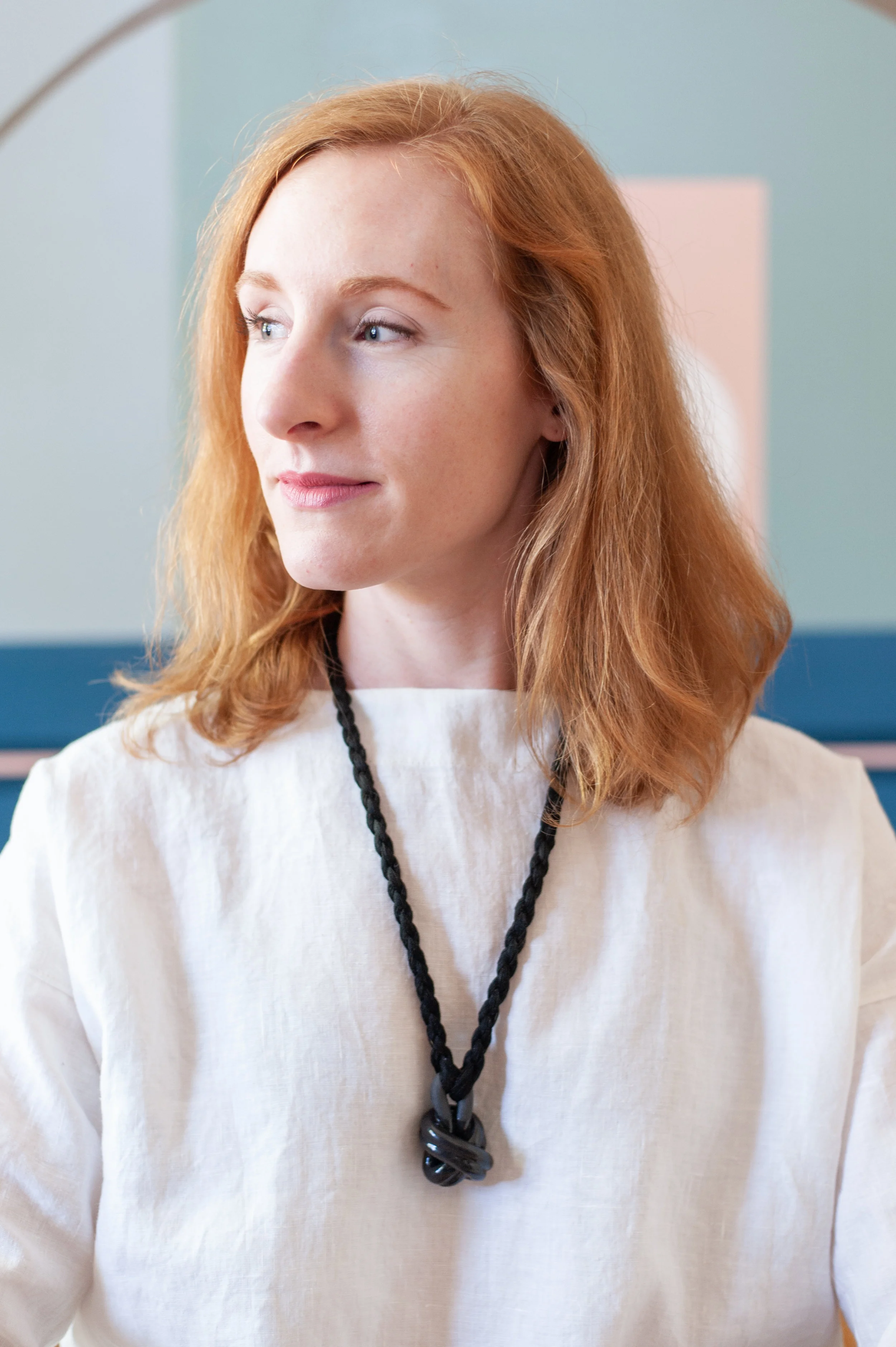 Knotted black porcelain, glazed on hand dyed 100% cotton cord in black. 28” long